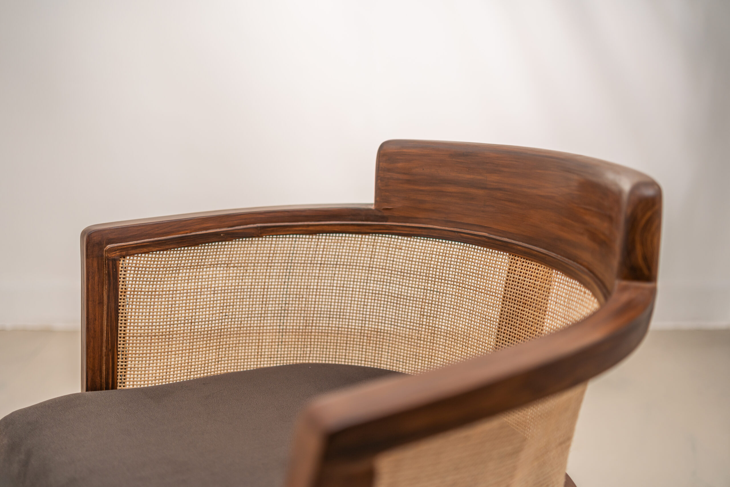 Introducing a rustic retreat for your home. Crafted from natural teak wood and woven rattan, it brings the outdoors in with its earthy charm. Relax into its cushioned back and seat, offering comfort and support with every sit. Built to withstand the test of time, its sturdy construction ensures durability while maintaining a lightweight design for easy movement.
